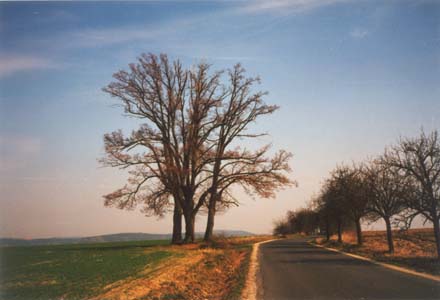 Lípy u sv. Anny, pohled od západu (od Valdic). Konec března 1999.